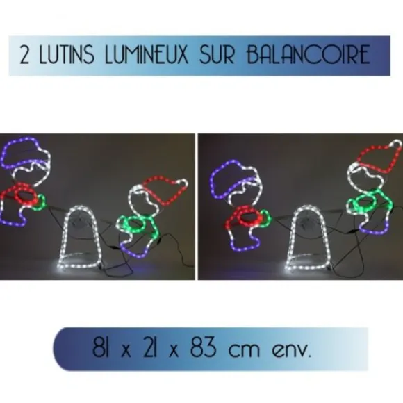Les 2 Lutins Lumineux De Noel Sur Balancoire Comprennent 6 Mètres De Tubes Lumineux Avec 144 Led Multicolore