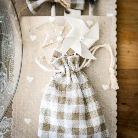 5 Pochons En Lin Vichy Ivoire