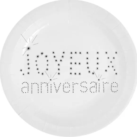 Les Assiettes Jetable Joyeux Anniversaire Blanc Sont En Carton De Qualité Proposées A Prix Discount En Lot De 10, Leur Forme Ronde De 23 Cm Seront Idéales Comme Assiette Principale