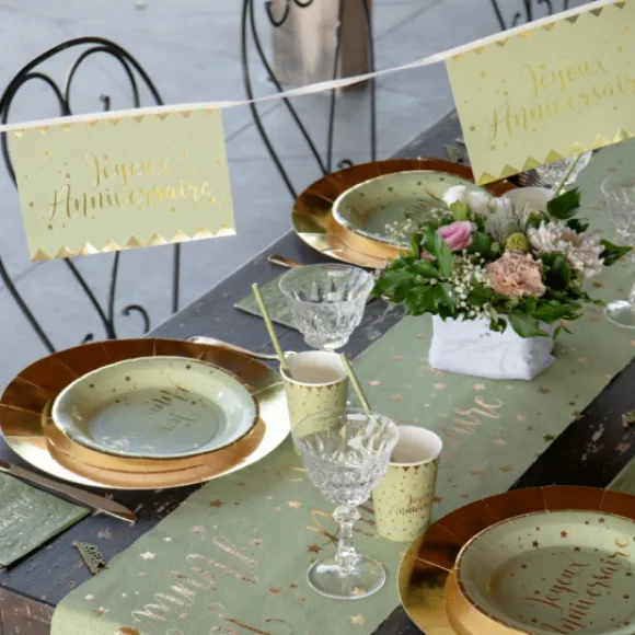 Banderole Joyeux Anniversaire Pas Chère Métallisée Vert Sauge