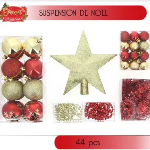 – Contenu : 44 Pièces : Boules, Etoiles, Cimier, Guirlandes De Perle…