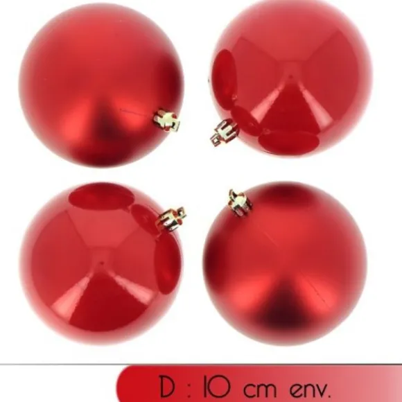 Ces Boules De Noel Rouge Sont Proposées En Sachet De 4 Avec Une Dimension Des Boules De Noel De 10Cm