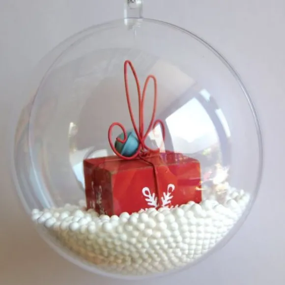 La Boule De Noel Transparentre A Remplir S’Ouvrira Facilement Afin D’Y Insérer Vos Nombreux Objets Décoratifs, Vous Pourrez La Décorer Avec De Jolis Plumes Ou Rubans Graçe Au Trou Situé Au Dessus Prévu À Cet Effet