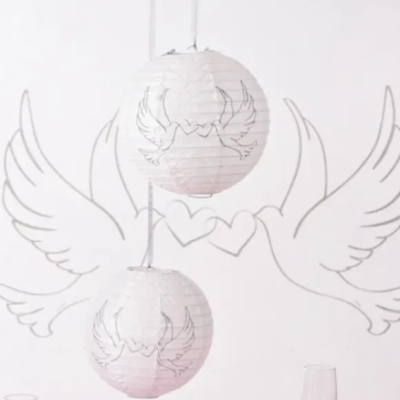 Boule Lanterne En Papier Colombe 20Cm, Ces 2 Boules En Papier Imprimées Sur Le Thème Colombe Sont Tout Simplement Magnifique Pour Votre Decoration De Salle De Mariage ! Vous Pourrez Pour Un Des Plus Bel Effet Les Accorder A Notre Large Choix De Decorations Mariage Sur Le Thème Colombe