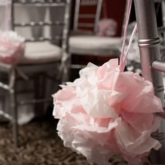 Soyez Astucieux , Cette Boule Pompon En Papier De Soie Pourra Aussi S’Attacher Sur Vos Chaises De Cérémonies, Ou Vos Bancs D’Églises Par Exemple