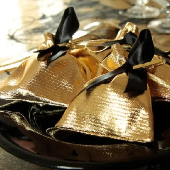 Très Chic, Ces Bourses À Dragées Métallisé Or, Elles Conviendront Pour Votre Mariage Sur Un Thème De Strass Et De Paillettes