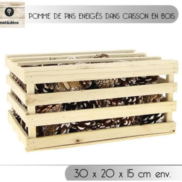 Splendide La Caisse De Pommes De Pin Enneigées, Optez Pour Ce Lot De Pomme De Pin Naturel Muni De Sa Caisse En Bois Pour Votre Décoration Mariage Ou Noel