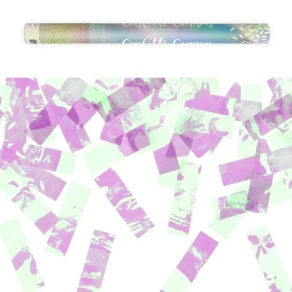 Le Canon À Confettis Blanc Irisé 60Cm Projetera Une Pluie De 1000 Confettis De Forme Rectangulaire 4.5 Cm Et De Couleur Blanc Irisé