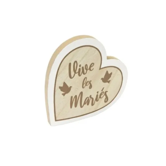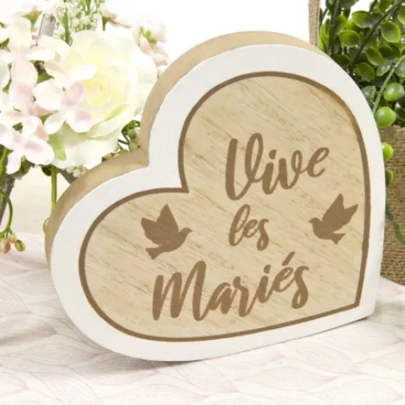 Centre De Table Coeur Vive Les Mariés Naturel, Choisissez Ce Centre De Table Original Et Élègant Pour Votre Décoration De Mariage