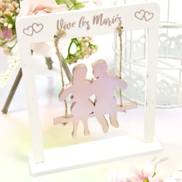 Le Centre De Table Couple Sur Balancoire Rose Gold Est Vendu A L’Unité Et Mesure 15 X 13 X 3 Cm Avec Une Matiere En Bois Métallisé Doré