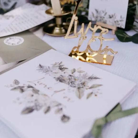 Magnifique, Le Centre De Table Mot Livre D’Or Or En Plexi Disposez Le Au Milieu De Vos Tables De Fête , Vous Apprécierez Cette Décoration Elègante Et Raffinée