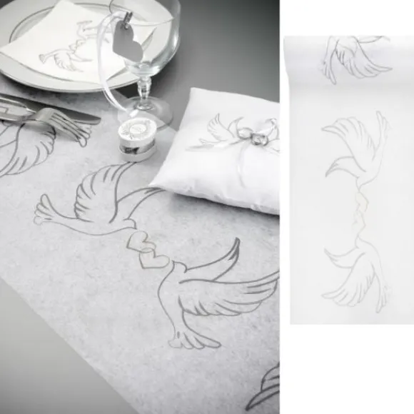 Sublime Le Chemin De Table Colombe En Tissu Intissé , Un Chemin De Table Original Et Épuré Sur Le Thème Des Colombes, Un Chemin De Table Pas Cher Pour La Décoration De Vos Tables De Fête