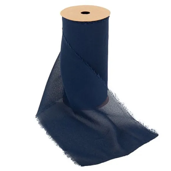 Le Chemin De Table Effiloché Mousseline Bleu Marine Est Proposé A L’Unité A Prix Discount Avec Une Largeur De 15Cm Et Une Longueur De 3 Mètres