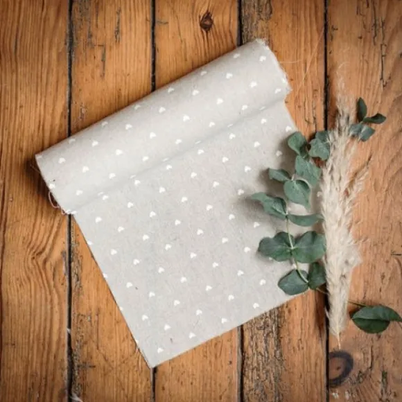 Le Chemin De Table En Lin Avec Coeurs Blanc Est Proposé A L’Unité A Prix Discount, Il Mesure 28Cm De Large Sur 5 Mètres De Long , Idéal Pour Une Décoration Naturelle En Lin