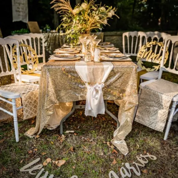 Illuminez Votre Décoration De Table Avec Le Chemin De Table Lin Floque Nid D’Abeille, Un Chemin De Table Etincellant Avec Son Lin Floqué Or
