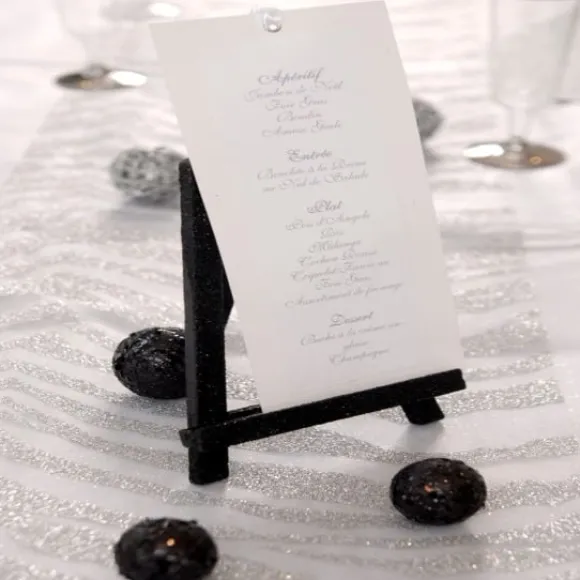 Ce Chevalet De Table Est Disponible En 4 Coloris : Naturel, Argent Pailleté, Blanc Pailleté, Noir Pailleté