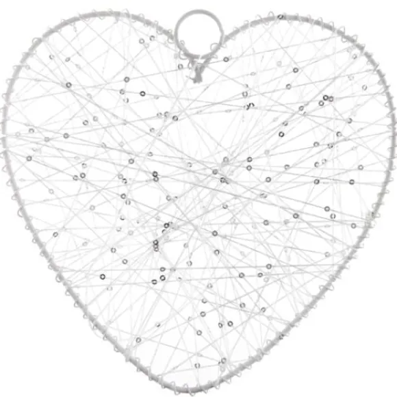 Le Coeur De Fil Blanc 20 Cm A Suspendre Est Proposé A L’Unité A Prix Discount, Avec Une Dimension De 20 X 20 Cm