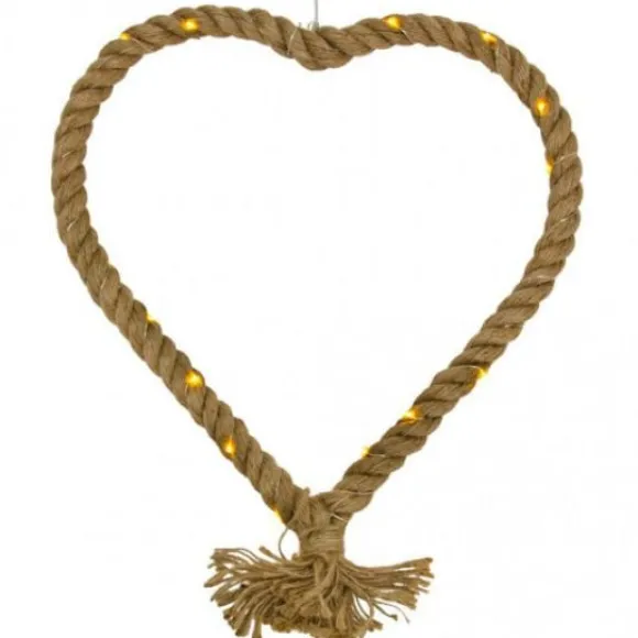 Le Coeur En Jute En Led A Suspendre Est Vendu A L’Unité A Prix Discount Avec 20 Led Blanc Chaud , Idéal Pour Décorer Votre Intérieur Sur Un Theme Jute