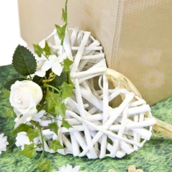 Vous Pourrez Accorder Le Coeur En Rotin Avec Rose Et Feuillage A Suspendre Avec Toute Notre Gamme De Décoration Mariage Naturelle