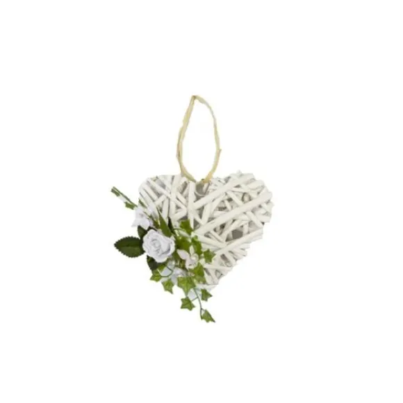 Le Coeur En Rotin Avec Rose Et Feuillage A Suspendre Est Vendu A L’Unité A Prix Discount Et Mesure 14 X 14 Cm Environ
