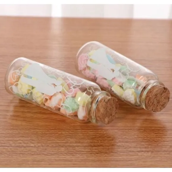 Fiole Vive Les Mariés Avec Petits Coeurs : Voici Un Produit Exclusif Sur Le Net Avec Bouchon En Liège Idéal Comme Contenant A Dragées Ou Autres Confiseries