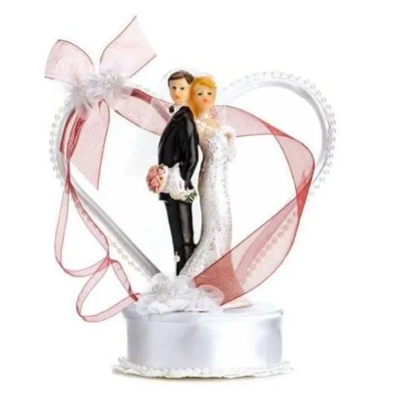 Le Couple De Mariés Avec Coeur Et Ruban Bordeaux Est Proposé À L’Unité À Prix Discount, Sa Matière Est En Résine De Qualité Et Une Hauteur De 15 Cm