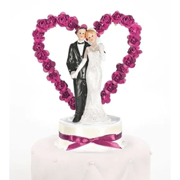 Choisissez Le Couple De Mariés Avec Coeur Fuchsia : Une Figurine Mariage Romantique Pour Votre Pièce Montée