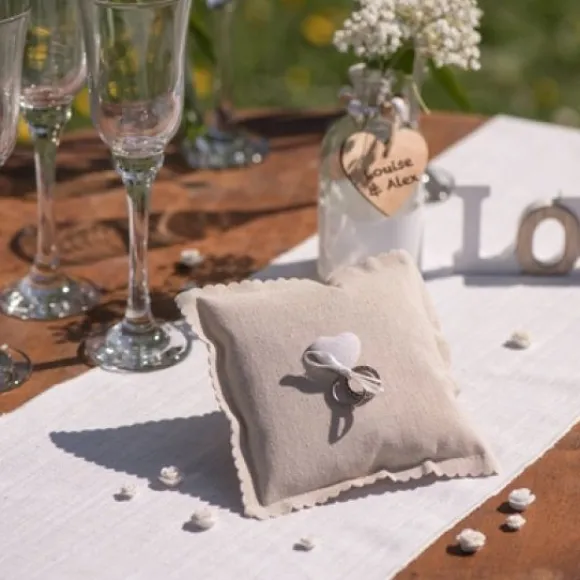 Retrouvez Notre Large Choix De Décoration Mariage Pas Cher Pour Accorder Le Sublime Coussin D’Alliance En Coton Avec Coeur Naturel