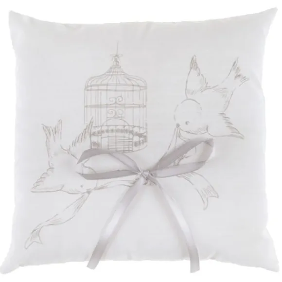 Le Coussin Porte Alliance Alliances Et Colombes Est En Satin Et Coton De Dimensions 18 X 18 Cm Vendu À L’Unité