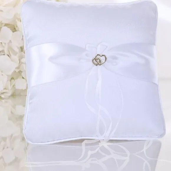 Coussin Porte Alliance Blanc En Tissu Satin Double Coeur Magnifique Ce Coussin Porte Alliance Blanc Avec Son Ruban En Satin Luxe Blanc Vous Pourrez Placer Avec Élègance Vos Alliances Au Milieu De Ce Joli Coeur