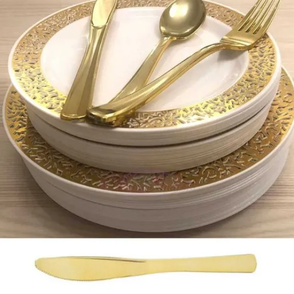 Les Couteaux Or En Plastique Imitation Inox Trouveront Facilement Leur Place Sur Vos Buffets De Cérémonie