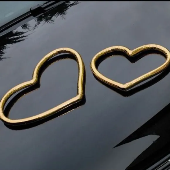 Deco Voiture Mariage 2 Coeurs Dorés : Choisissez Ce Lot De 2 Coeurs Dorés Métalliques A Poser Sur Le Capot De Votre Voiture