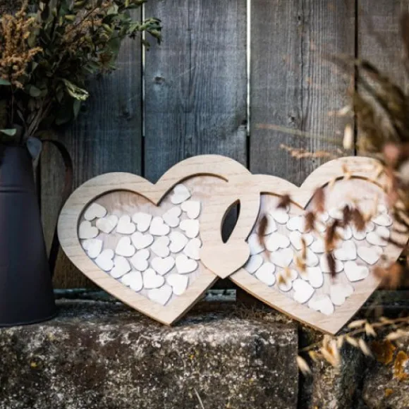 Splendide Le Double Cadre Coeur Livre D’Or En Bois Avec 60 Coeurs, Deux Cadres En Forme De Coeur Entrelacés A Poser Dans Votre Salle De Mariage