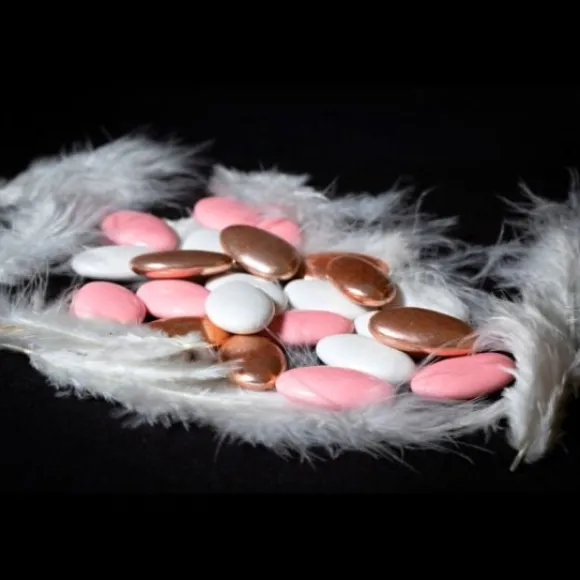 Les Dragées Chocolat Assorti Blanc Rose Et Rose Gold Sont Vendues En Boite De 500 Gr Contenant Environ 170 Dragées ( Environ Pour 20 Convives )