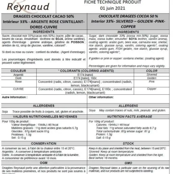 Les Dragées De Chez Reynaud (Fabricant Français) Proposent Un Chocolat 50% De Cacao Moulé Et Enrobé D’Une Très Riche Palette De Sucres Colorés.