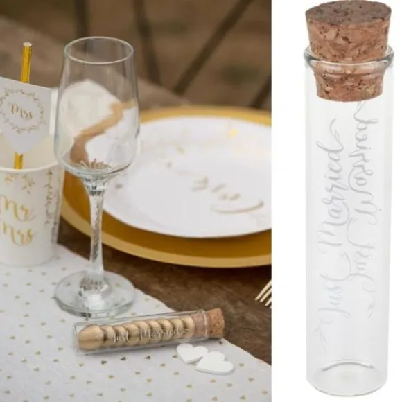 Optez Pour L’Eprouvette Dragees Just Married Argent , Un Contenant Dragees En Verre Parfait Pour Votre Déco De Table Mariage