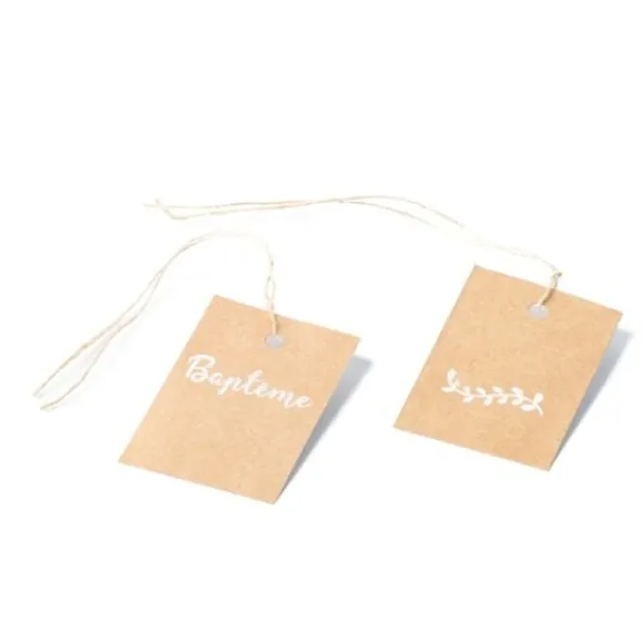 L’Etiquette Baptême Kraft Est Proposée A Prix Discount En Lot De 20 Avec Leurs Liens