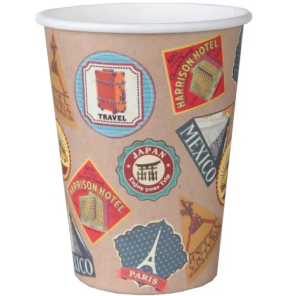 Gobelet Jetable En Carton Voyage , Choisissez Ce Magnifique Lot De 10 Gobelets En Carton Sur Le Theme Voyage Idéal Pour Votre Cérémonie