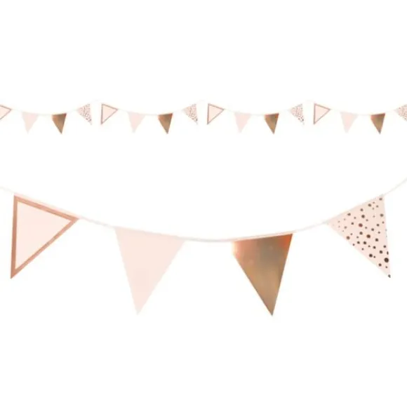 La Guirlande En Papier Rose Gold Est Vendue A L’Unité A Prix Discount Avec 16 Fanions Et Mesure 18 Cm De Hauteur Sur 4 Mètres De Long