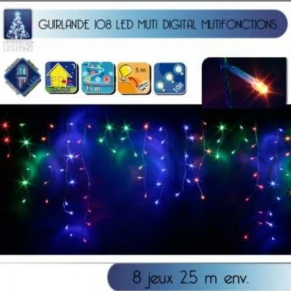 La Guirlande Lumineuse Stalactite Extérieur Est Proposée À Prix Discount, Elle Contient 108 Led Multicolores Avec Un Clignoteur Avec Variation De 8 Jeux De Lumières