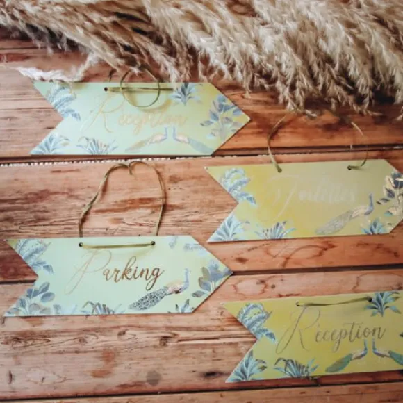 Kit De 3 Flèches Directionnelles Theme Tropical Peacock Choisissez Ce Lot De 3 Flèches Mariage Pour Votre Evenement Sur Un Theme Tropical