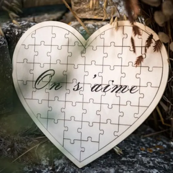 Magnifique Le Livre D’Or Puzzle Coeur En Bois On S’Aime, Un Livre D’Or Vraiment Original Ou Les Mariés Auront Toute La Nuit Pour Reconstituer Ce Joli Coeur En Bois