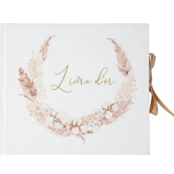 Le Livre D’Or Theme Theme Baptême Pampas Fleur De Coton Est Vendu A L’Unité A Prix Discount Et Mesure 21 X 19 Cm Avec Ses 68 Pages Blanches