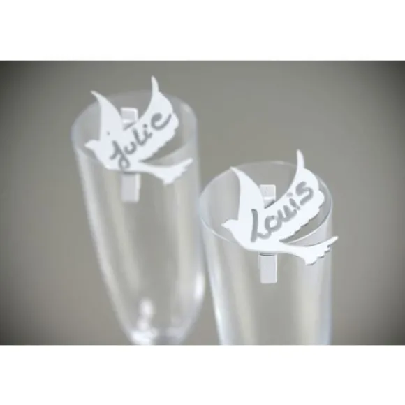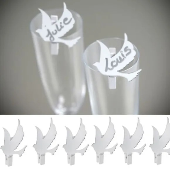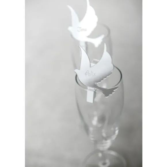 Vous Pourrez Fixer Le Marque Place Miroir Colombe Sur Pince Sur Vos Ronds De Serviettes, Contenants Dragées, Verres Ou Vos Autres Accessoires De Table