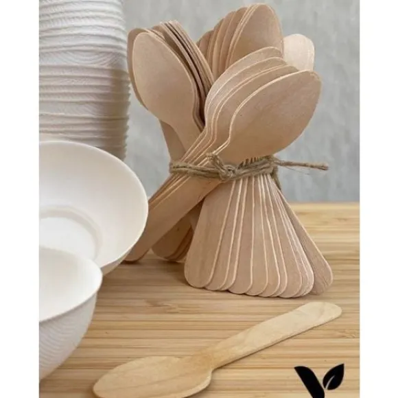 Choisissez Ce Lot De 20 Mini Cuillères À Café En Fibre De Canne A Sucre Pas Cher Pour Une Vaisselle Jetable Sur Le Theme Naturel Ou Vintage