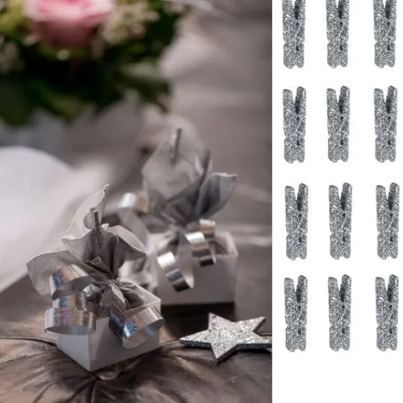 La Mini Pince À Linge Argent Pailleté Est Vendue Par Sachet De 12 Pièces Avec Un Grand Choix De Coloris !