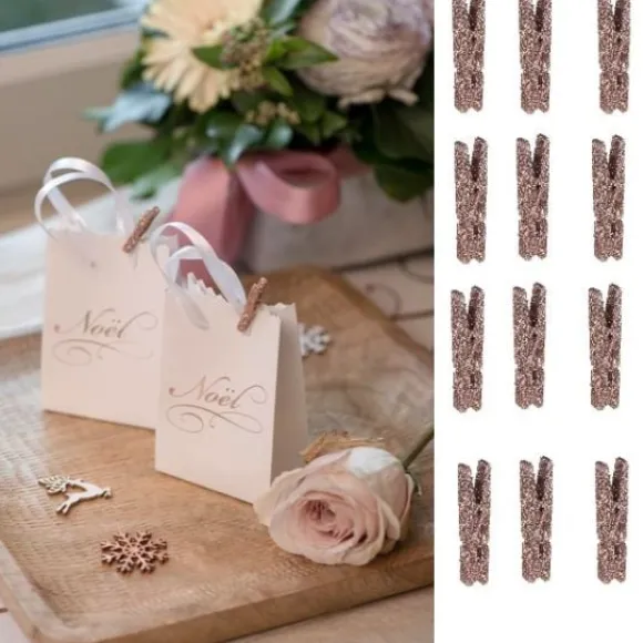La Mini Pince À Linge Rose Gold Pailleté Est Vendue Par Sachet De 12 Pièces Avec Un Grand Choix De Coloris !
