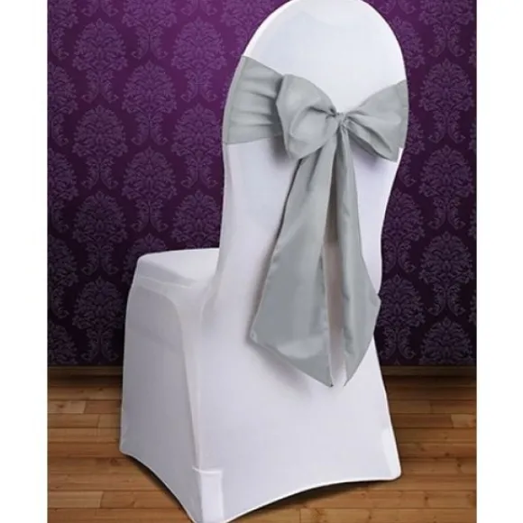 Le Noeud De Chaise Mariage En Satin Argent Est Proposé A L’Unité A Prix Discount, Il Mesure 275Cm De Long Avec Une Largeur De 15Cm/20Cm