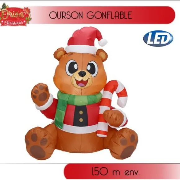 Ourson Gonflable Lumineux 150Cm, Optez Pour Ce Sublime Ourson Gonflable Lumineux, Parfait Pour Votre Décoration Noel Intérieure Ou Extérieure