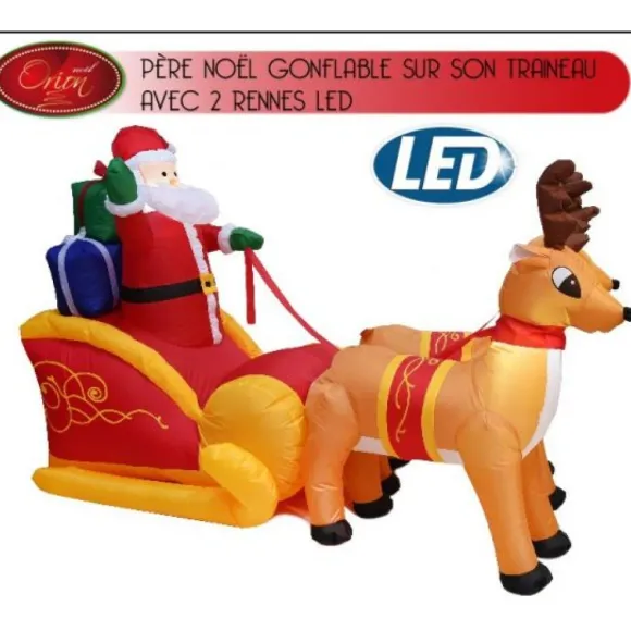 LE Père Noel Gonflable Sur Traineau Est Proposée A L’Unité A Prix Discount, Il Mesure 180Cm De Hauteur Et 230Cm De Longueur , Il Est Lumineux , Idéal Pour Un Commerce Ou Jardin Extérieur
